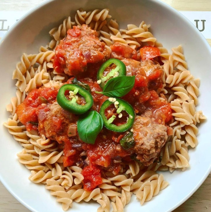 UPDATE – As always I come back to delicious recipes and I’ve recently enjoy cooking and devouring these meatballs again recently with pasta and topped with fresh chillies mmmm!!