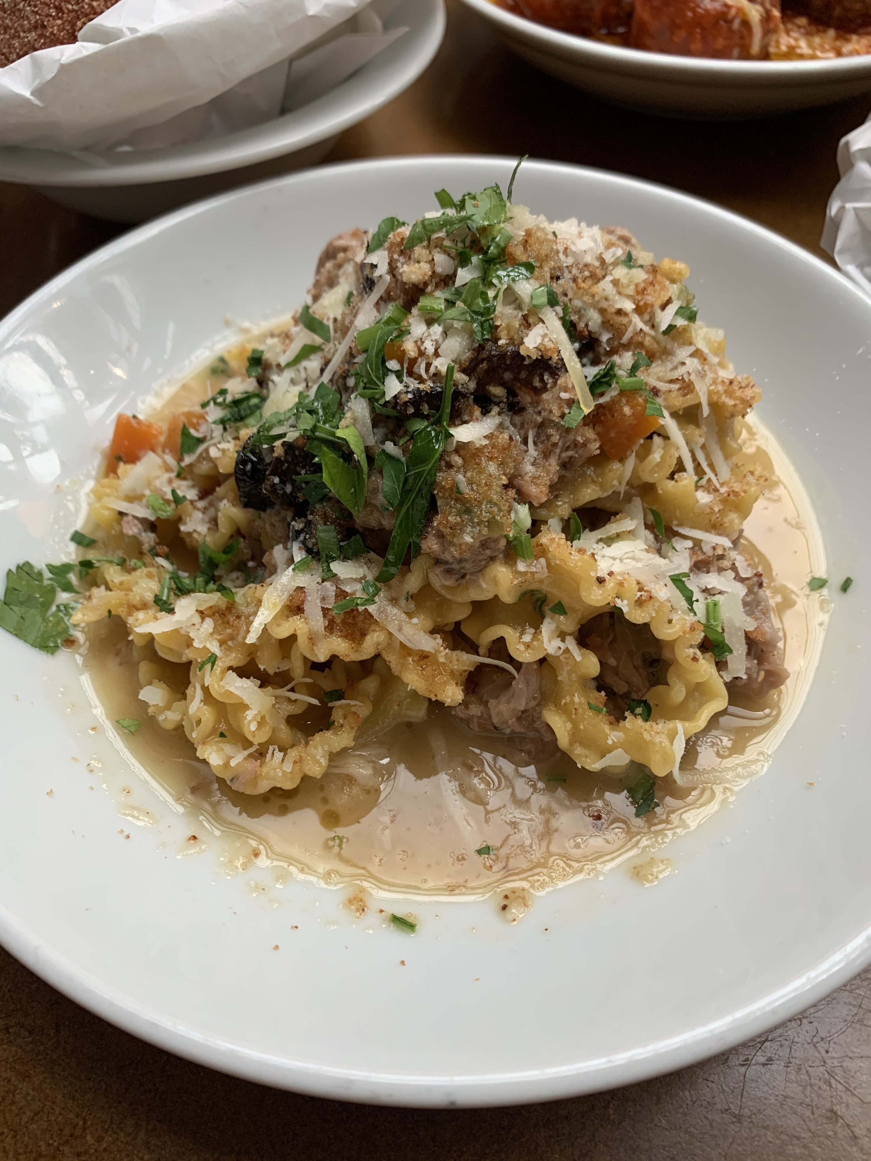 Malfaldine Pasta – Fresh homemade pasta with a lamb & black olive, pancetta and mint ragu, topped with an anchovy crumb. – Wow! This looked good, this tasted good, we loved it. A different pasta dish to most Italian restaurant menus and you could really taste every ingredient.