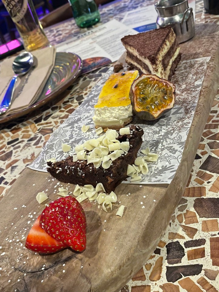 Everyone has room for dessert right?? Especially when it consists of a trio selection of TIRAMISU – to die for!! SALTED CARAMEL CHOCOLATE BROWNIE – very indulgent, and PASSION FRUIT CHEESECAKE – light and refreshing against all the chocolate.
