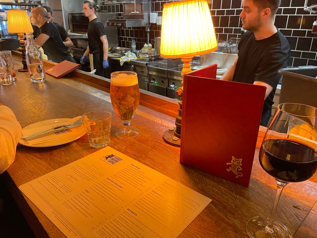 Chargrilled lamb skewers with butter bean hummus and harissa yoghurt – we love anything lamb and anything harissa on a menu, and this did not disappoint! Juicy, rare lamb cooked to perfection and a great portion to share.