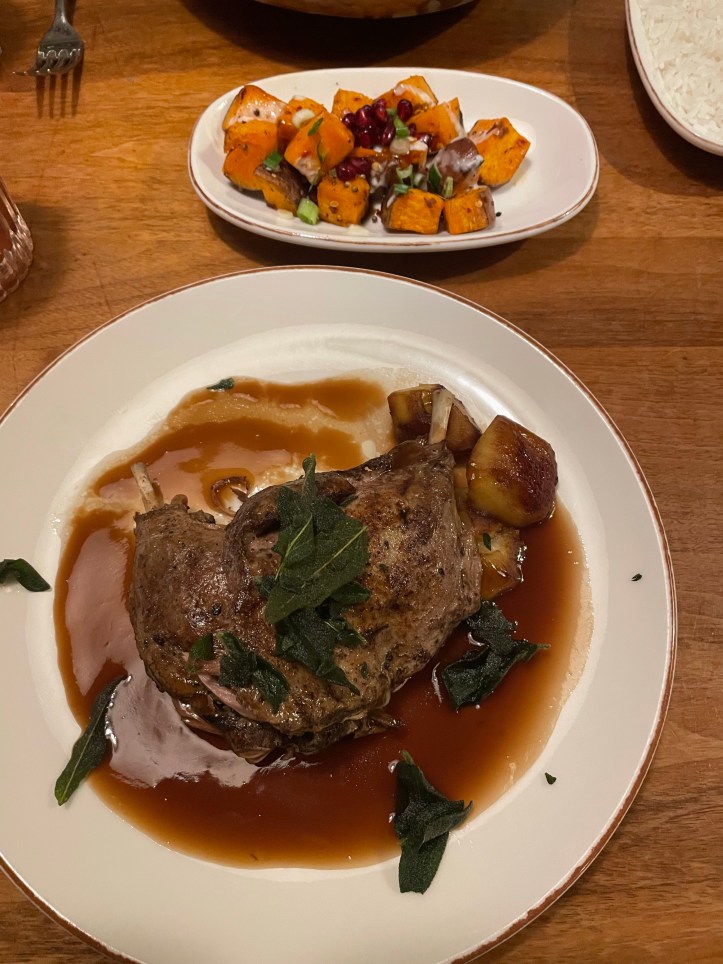For my main I chose Roast Duck with honey roast apples, sage and red wine sauce. I also added a side of charred sweet potato wedges. The dish altogether was quite sweet but as you know, this doesn’t bother me with having a sweet tooth but may have been a little too much for someone that doesn’t enjoy savoury and sweet. I rally enjoyed this however. There was enough duck meat for two people on my plate to be honest! But it was cooked beautifully. The side of sweet potatoes with the added creme fraiche , spring onion and pomegranate really complimented each other too.