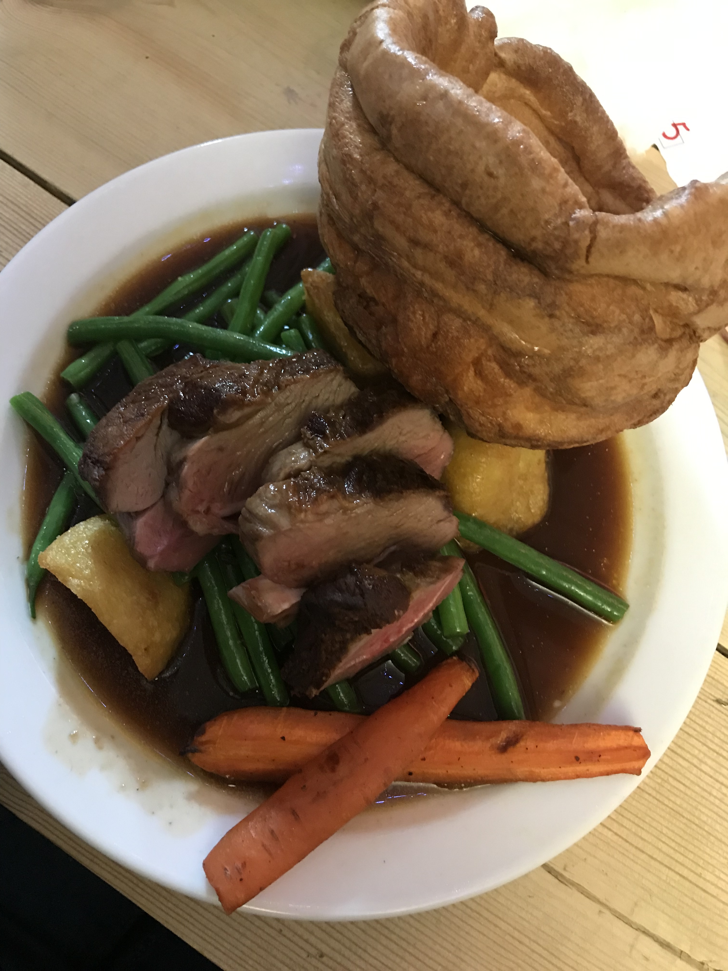 A further 5-10 minutes later and another server said they were plating ours now…. When the food finally arrived, the portions were decent and we did enjoy the food. Meat, veg and roast potatoes sat in lots of gravy topped with a large Yorkshire Pudding, nothing there to not enjoy. However the wait and the lack of service had dampened our enjoyment by then. The lamb and chicken was cooked beautifully, the beef was a little tough and fatty. We tried some of the side dishes; the cheesy leeks are gorgeous as is the sweet potato mash. I didn’t think much to the broccoli pesto side dish unfortunately.