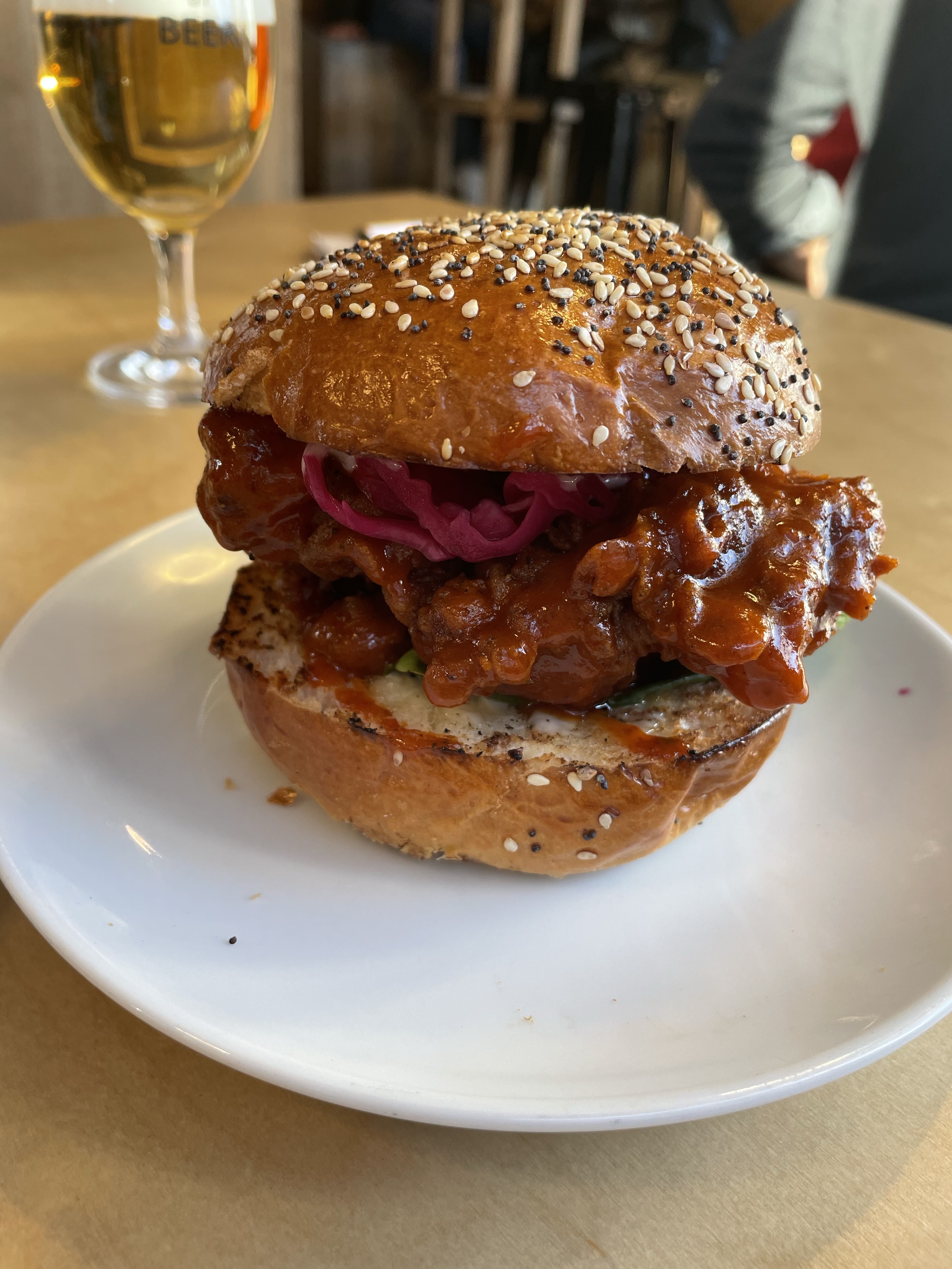 - Sriracha Chicken Burger £10.40 – Fried Chicken, Sriracha Butter Sauce, Aioli, Lettuce, Pickled Cabbage, Potato Brioche – The chicken coating was perfectly crispy and the whole thing was delicious. The burgers are just the right size, not too messy or over the top, just right.