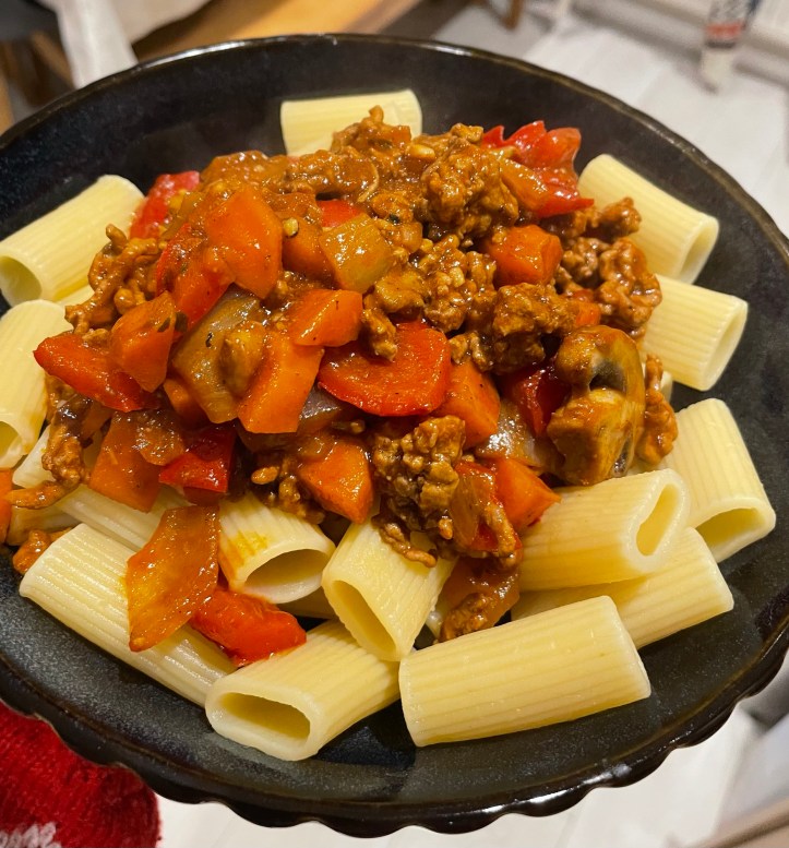 I do love a good, traditional spag bol, but I thought I’d spice it up a little and use up some Cajun paste I had in the fridge and it worked well. The sauce was rich and delicious. I also had some rigatoni pasta shapes from a past Degustabox which paired with the “bolognese” really well for an ultimate mid-week, comfort food meal. Give this recipe a whirl and let me know what you think.