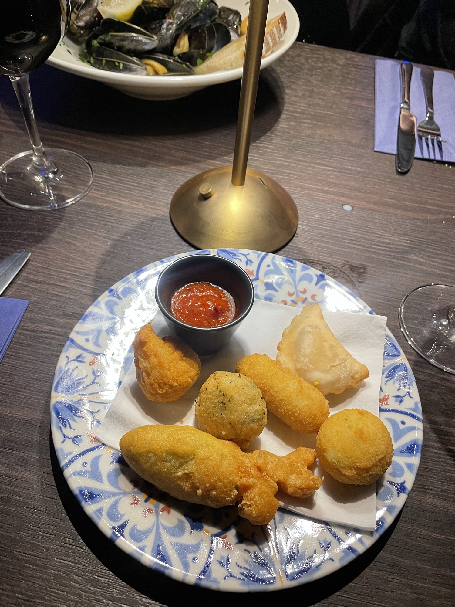 - Frito Misto Napoli – a mixture of mini arancino, potato croquette, cheese bites, mini calzone, frittatina do spaghetti & deep fried courgette flower with ricotta & provola – every element was tasty and great comfort food