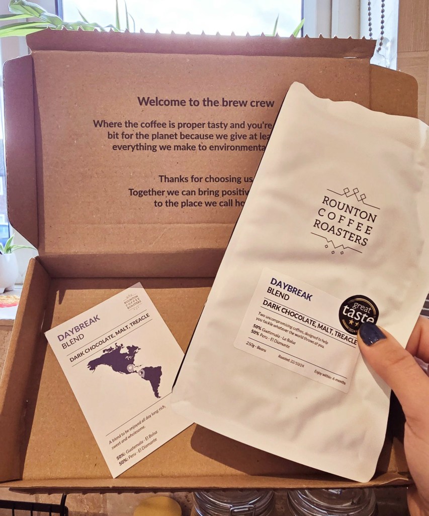 Rounton Coffee Roasters also offer a Subscription service. Fantastic, quality coffee straight to your door! Choose from Roaster’s Choice, Smooth, Fruity or Decaf Subscription set the frequency (fortnightly or monthly) and grind (whole bean, filter, cafetiere, etc)and then enjoy! You can amend the frequency and your subscription any time, and currently (07.01.25) they are offering 25% off your introductory box with code FRESHSTART. Find out more about this subscription here.