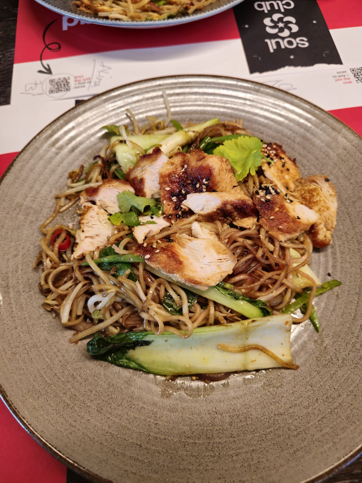 - chicken teriyaki soba – a lovely dish with crunchy veggies and plenty of crispy chicken. Not gonna lie, I put the rest of the gyoza dipping sauce on top – scrumptious! (£15.50)