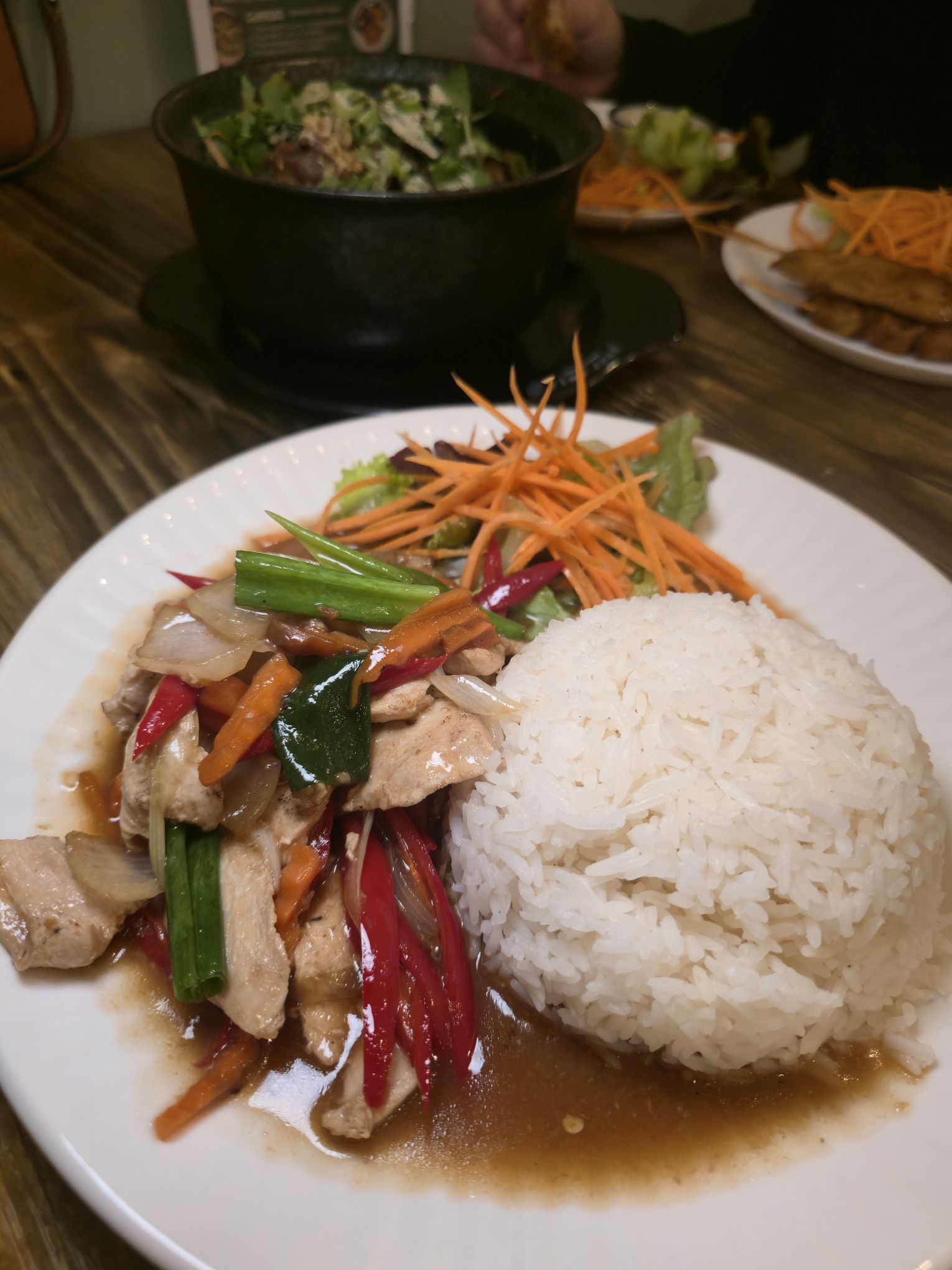 - Wok-Fried Chicken with garlic & pepper, served with rice
